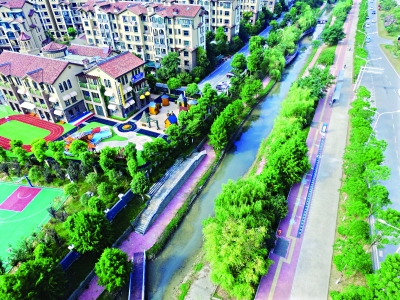 漢陽四新全力打造“三橫三縱”海綿化城市排澇干渠體系,勾畫出湖渠相連、人水相依的美麗畫卷。圖為海綿化改造后的四新排澇干渠芳草溪,成為一條濱水生態(tài)綠色景觀帶,周邊居民多了一處休閑地 記者李子云 攝